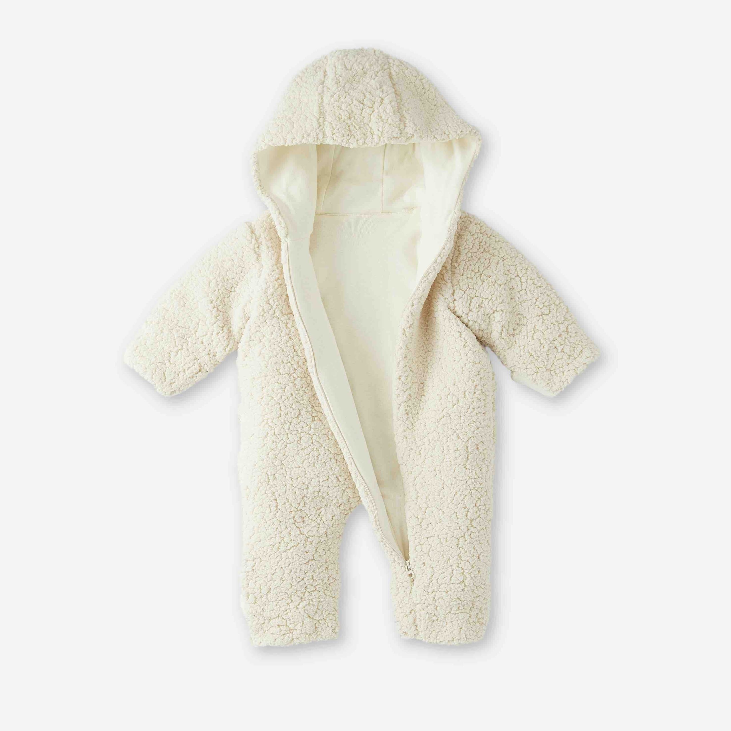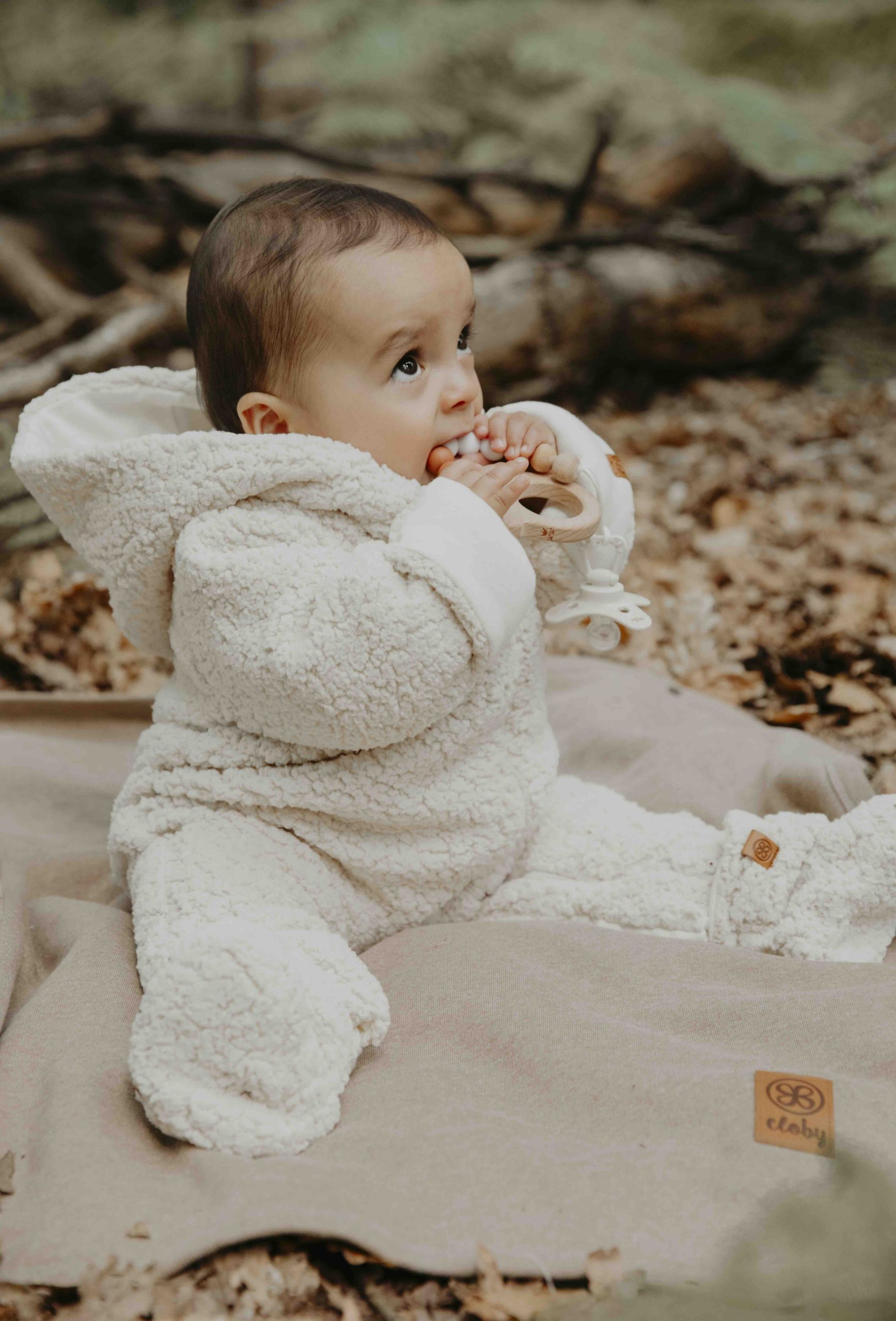 Hoia oma pisike külmematel kuudel soojas ja mõnusalt hubases meie armsa teddy-kombekaga. See on valmistatud taaskasutatud polüestrist teddy-kangast ning voodriks on ülipehme orgaaniline puuvill – samaaegselt keskkonnasõbralik ja mugav, ideaalne ka kõige tundlikuma naha jaoks.