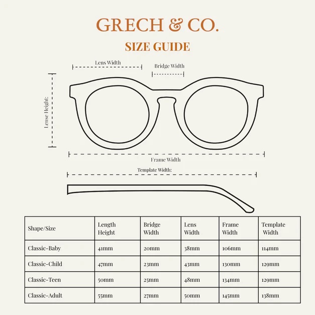 Grech & Co polariseeritud beebide päikeseprillid on tehtud ökosõbralikust ning vastupidavast materjalist. Päikeseprillid on painduva raamiga, mis teeb nad murdumisele vastupidavamaks. Mitte-toksiline materjal.