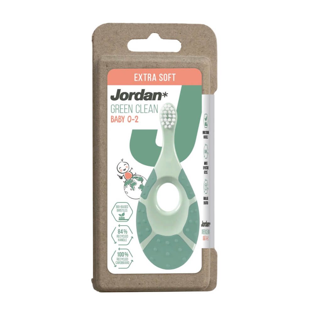 Jordan Green Clean beebide hambahari on valmistatud selliselt, et esimene harjamise kogemus oleks hea. Eriti pehmete harjastega hambahari on disainitud spetsiaalselt beebi esimeste hammaste hooldamiseks. Närimisrõngas on igemete stimuleerimiseks, lühike harja kael väldib harja sattumist kurku. Käepide on mugav lapsele ja täiskasvanule, sellises vanuses peaksid beebid kasutama hambaharja vanema juuresolekul.