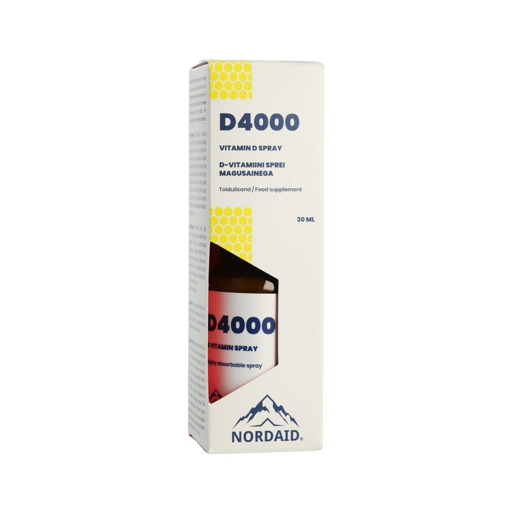 Nordaid´i D4000 sprei on kergesti omastatav, kuna jõuab läbi suu limaskesta koheselt vereringesse. Vitamiin D aitab hoida luid ja hambaid tugevana ning toetab immunsüsteemi normaalset talitlust.