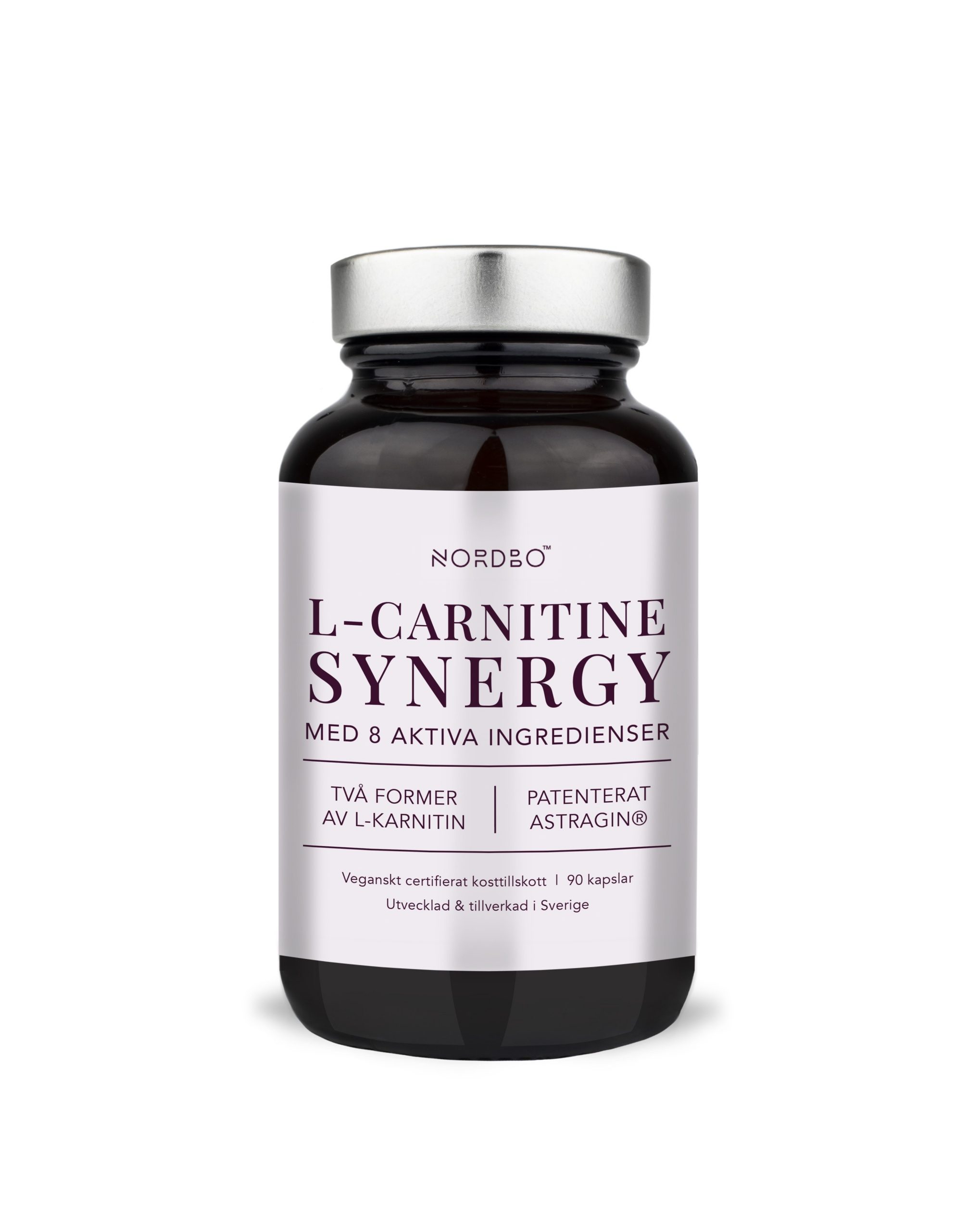 NORDBO L-Carnitine Synergy on sünergiline kompleks, mis ühendab kaks L-karnitiini vormi (atsetüül-L-karnitiin ja L-karnitiin-L-tartraat) koliini, koensüüm Q10, AstraGin®-i ning vitamiinidega B1, B6 ja B12.