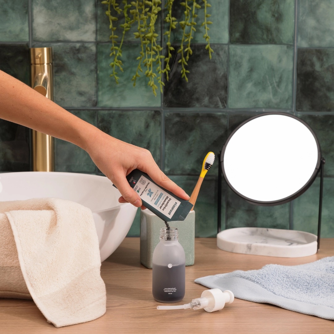 Lisaks ei ole vaja äravisatavat plasttuubi – hambapasta on ilusas taaskasutatavas pudelis, mida saab alles hoida ja korduvalt uuesti täita.